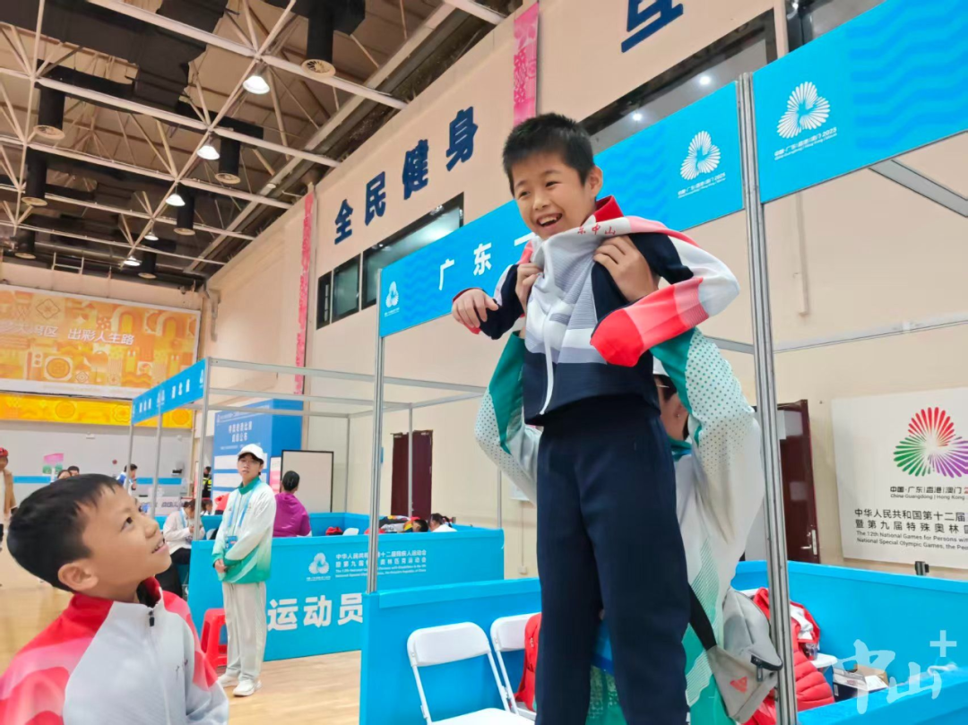 在残特奥会的赛场上,像寇家橦这样的赛事服务志愿者还有很多。这个温暖的“飞翔瞬间”,正是残特奥会中山赛区志愿服务体系的生动缩影。