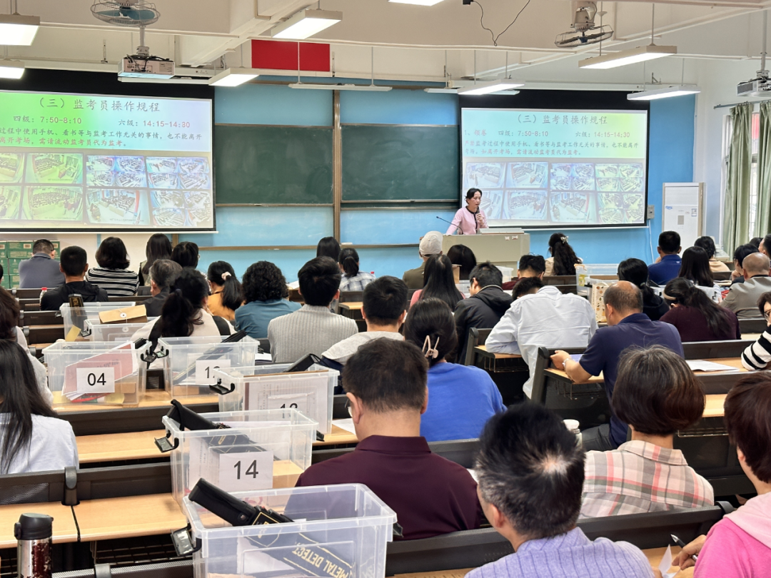 我校高度重视此次考试,成立了由分管校领导牵头的考试工作领导小组,下设8个专项工作组,围绕考务组织、安全保障、技术支持等方面,严格按照上级部门要求组织实施。考前,我校还专门召开考务协调会与培训会,并组织全体考务人员完成线上培训与考核,考核通过率达100%,确保每项任务责任到人、措施到位,多部门协同联动全面做好考前各项准备工作。